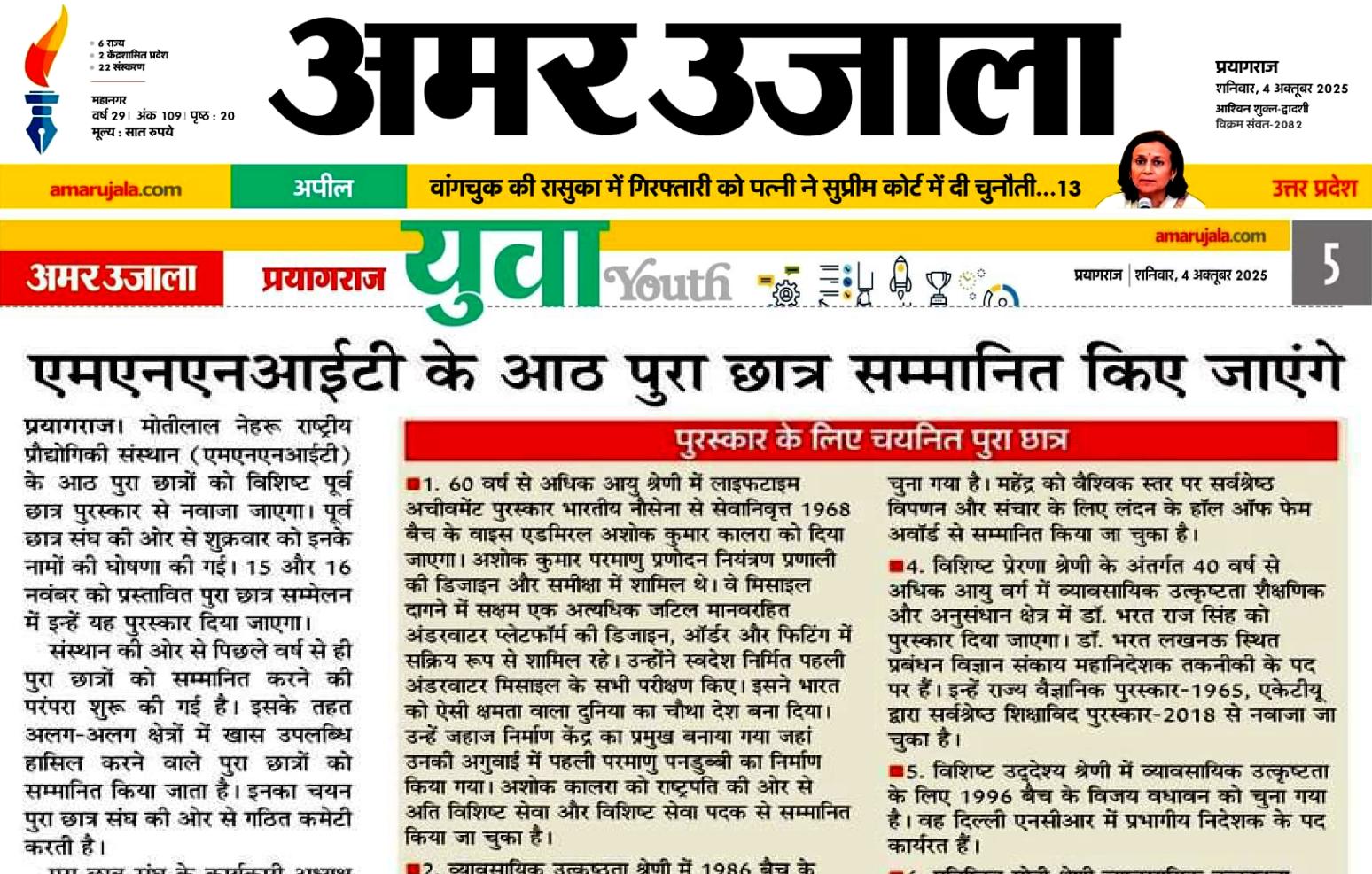 04 Oct 2025: Dainik Jagran-Prayagraj i). City Jagran Page-IV / ii). Amar Ujala Page-05 / iii). Hindustan Page-06 / iv). Hindustan Times Page-03 / v). Times of India Page-05 / Awardees Photos: 01 / 02