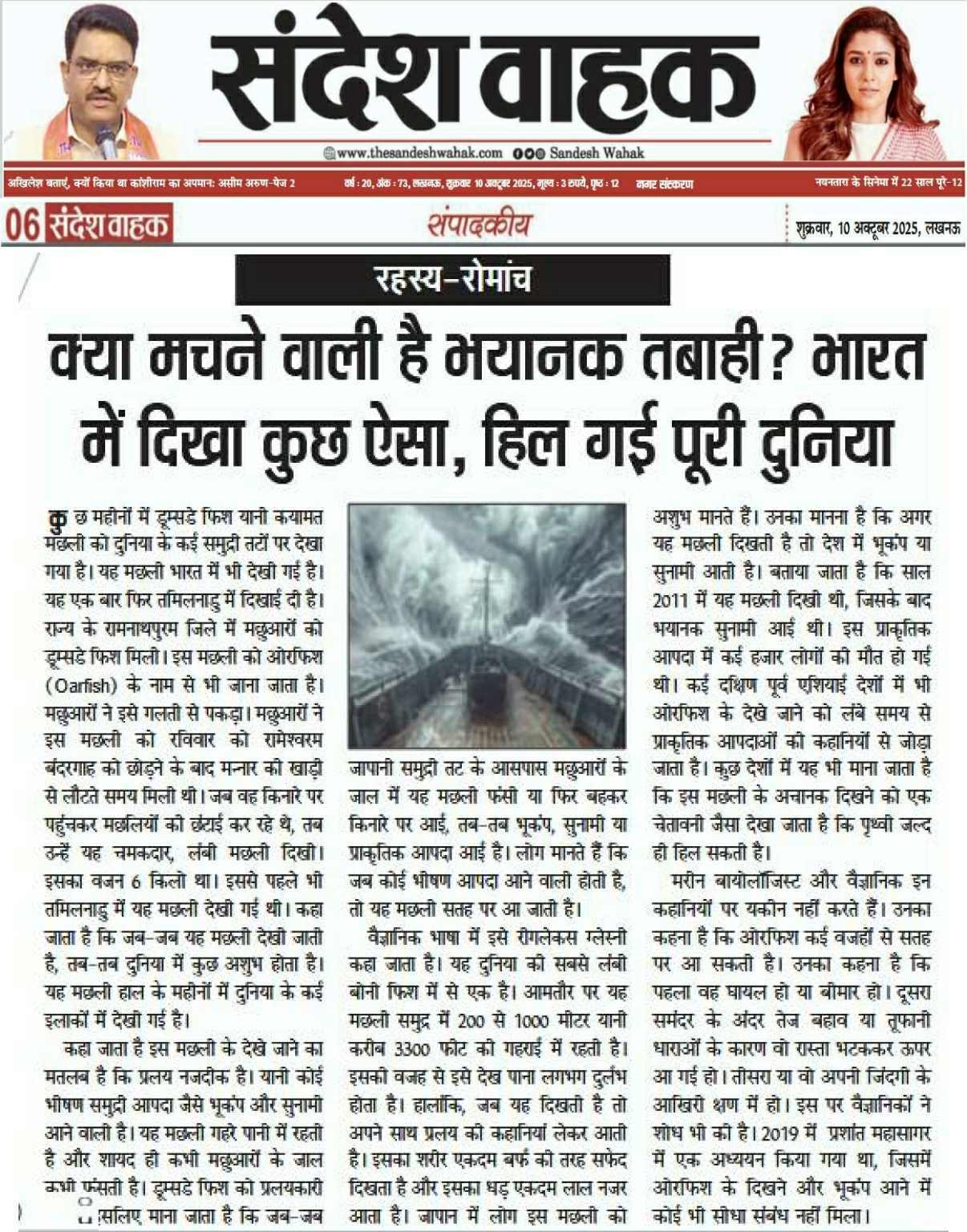 Aug 2025: i).02 Aug 2025: Hindustan-Chikengunia Spread in 110 Countries Page-20 / Sep 2025: ii). Pioneer Eng-Typhoon in Pillipines-Mass Evacuation Page-12 / Oct 2025: iii). Doomsday Fish Seen in Tamilnadu-Future Very Disasterous Page-06