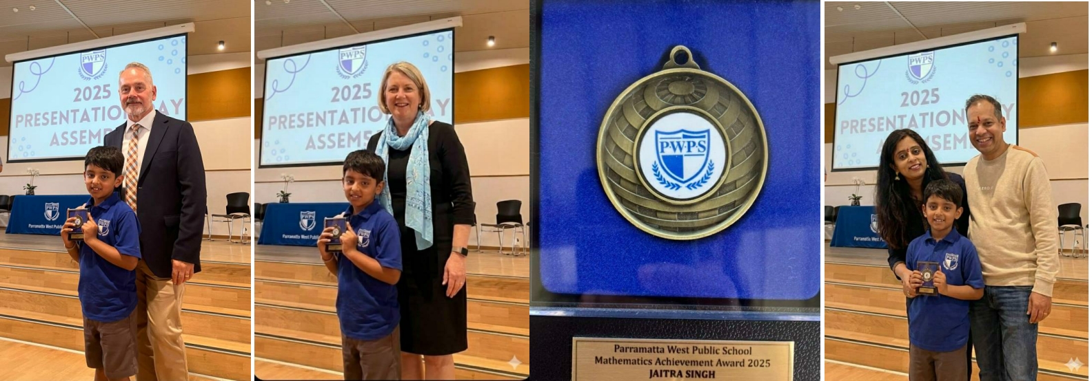 Sydney Mathematics Acheivement Award-2023 at PWPS,Sydney: Jaitra Singh on 15 Dec 2023.