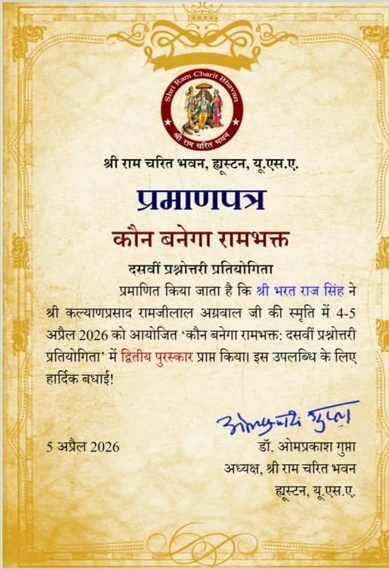 Certificates of Excellence-from Oct 2022: Oct 2022: Elsevier25 / 26 Nov 2022: Elsevier02 / 14 / 14(1) / 17 / 17(1) / 17(2) / 20 / 20(1) / 21 / 21(1) / 21(2) / 21(3) / 21(4) / 29 / 29(1). Dec 2022: Elsevier02 / 02(1) / 02(2) / 02(3) / 16. Jan 2023: Elsevier13th / 13(1) / 18 / 18(1). Mar 2023: Elsevier14th / Nov 2023: Bentham Science23rd. Mar 2024: Ramayan-6th Interl Conference-Certificate 21-23rd. May 2024: Certificate in Hanuman Chalisha: 04th / Aug 2024: Elsevier 09th / Diploma in Ramayan 24 Oct2023-10Aug2024 / Bentham Science15th Sep 2024: Certificate in Sundar Kand 01Jun2024-08Sep2024 / Certificate Distribution Video Dec 2024: Elsevier-Certificate of Excellence 29 Dec 2024 Apr 2025: Ramayan-7th Interl Conference-Certificate 02-05th. Apr 2025: Elesevier 22nd / 23rd / 24th. Jun 2025: Diploma Certificate in Shrimad Bhagwat Geeta-on 21st jpg :: pdf :: Roll No . Jul 2025: Certificate-Kaun Banega Rambhakta-(17/20)- 05th Jul 25 . Aug 2025: Certificate-Kaun Banega Rambhakta-(15/20)- 02nd Aug 25 . Dec 2025: Ramayan-8th Interl Confrenence-Certificate i).Prof. BRSingh 11-13th-Pdf / 11-13th-Jpg . Feb 2026: Certificate-Kaun Banega Rambhakta-(19/20)- 07th Feb 26 . Mar 2026: Certificate-Kaun Banega Rambhakta-(14/20)-07th Mar 26 . Apr 2026: Certificate-Kaun Banega Rambhakta-(29/35)-Second Prize-05th Apr 26