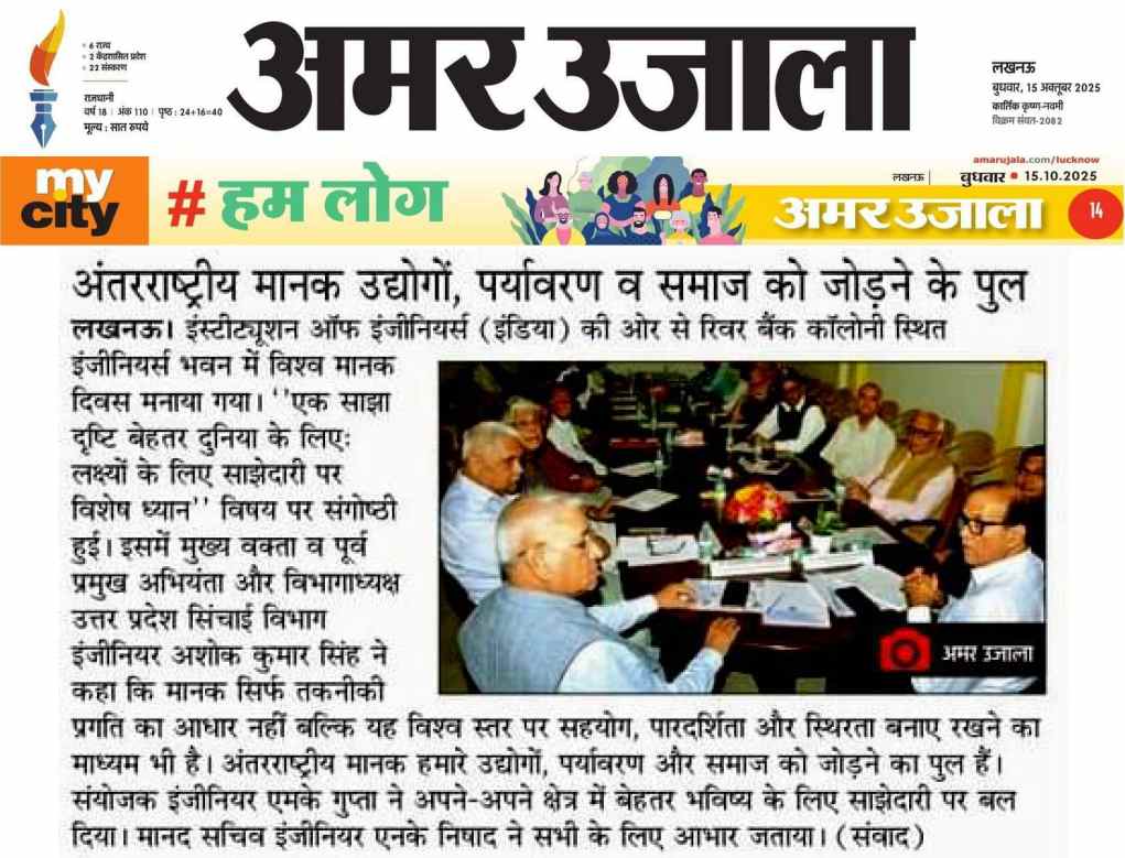 The Institution of Engineers (India), Lucknow, celebrated World Standards Day at the Engineers Bhawan, River Bank Colony on 14 Oct 2025. A seminar was organized on the theme: SDG-17- Partnerships for the Goals.