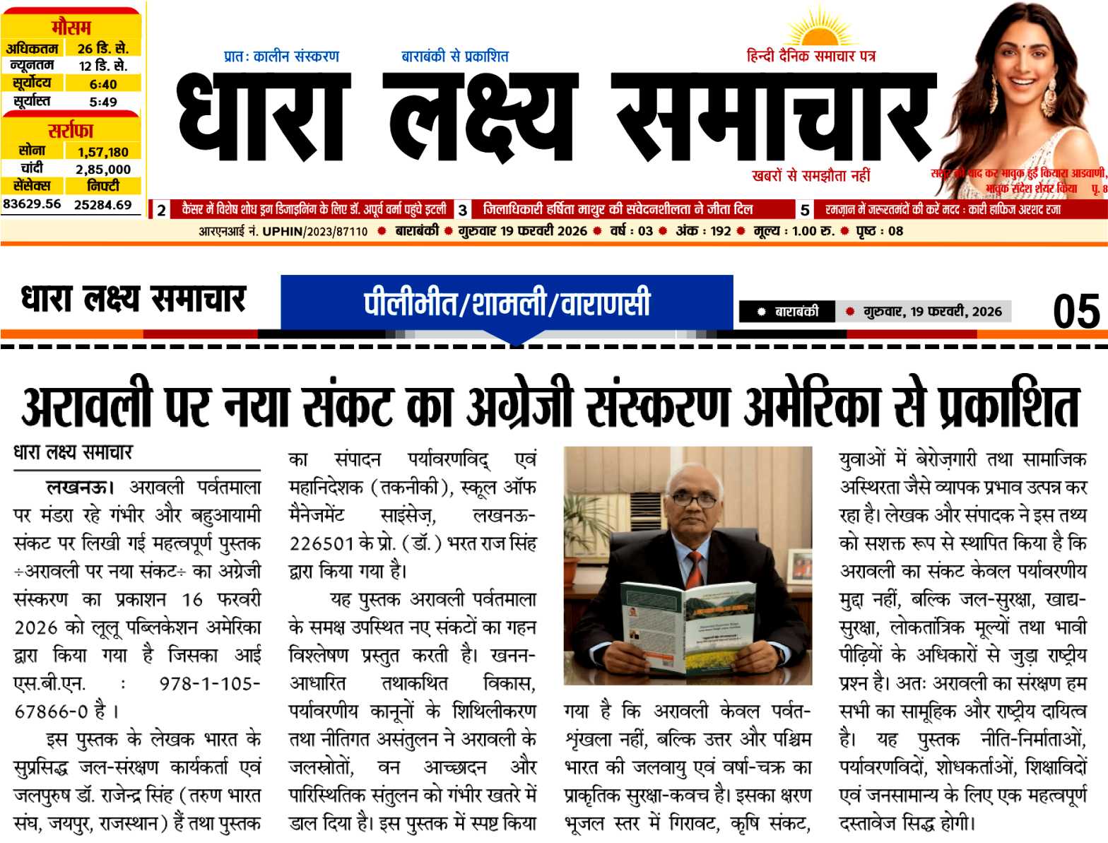 A book on Aravali Under a New Crisis, ISBN: 978-1-105-82852-2, authored by: Jal Purush Dr. Rajendra Singh, Tarun Bharat Sangh, Rajasthan and edited by Prof. (Dr.) Bharat Raj Singh, Director General, School of Management Sciences, Lucknow–226501, which is Published by: Lulu Publication Inc., USA on 07 January 2026. The book The book highlights the Aravali’s multifaceted crisis