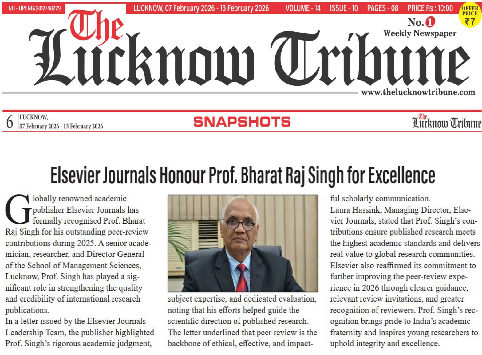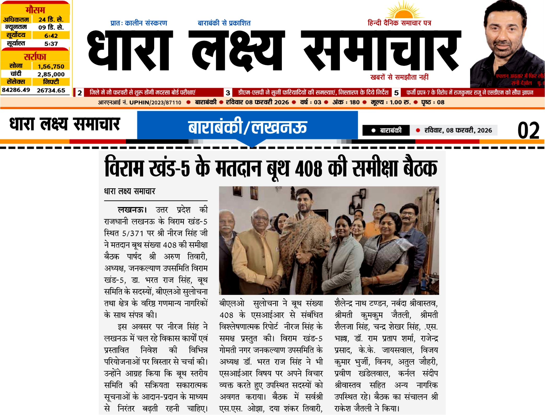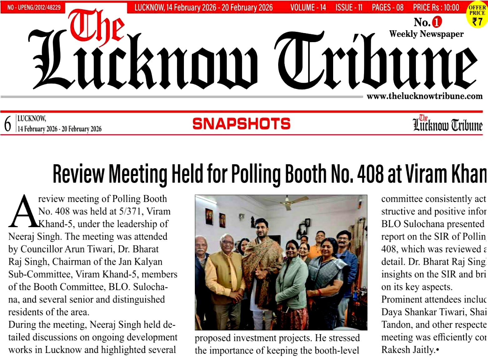 vi). First Editor Page-06 / 08 Feb 2026: vii). Dhara Lakshya Page-02 / 14 Feb 2026: viii). Lucknow Tribune Page-06 .
