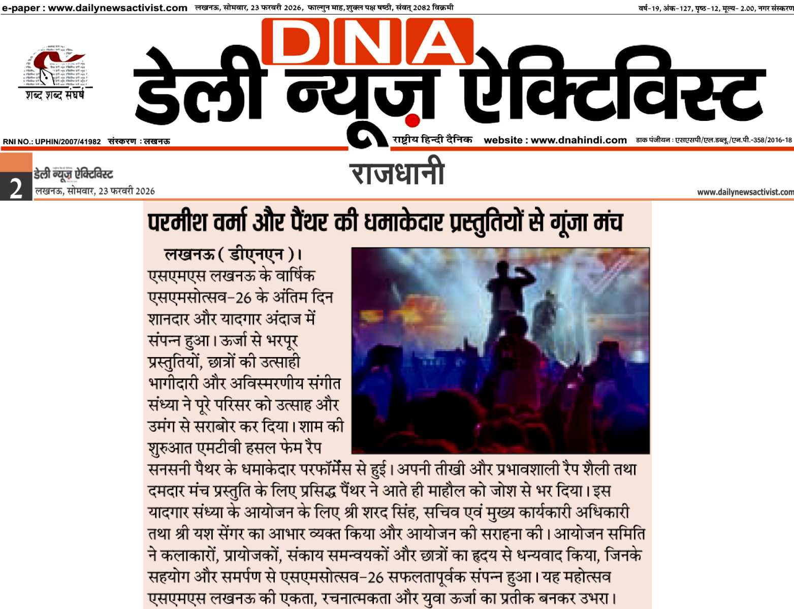 20 Feb 2026:i).Daily News Activist Page-02 / ii).Hindustan Page-06 / iii). NBT Page-07 / iv).Times of India Page-4 / 21 Feb 2026: v). Lucknow Tribune Page-2 / 23 Feb 2026: vi). Indian Express Page-4 .
