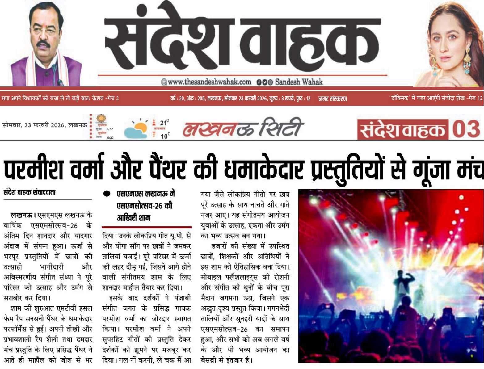 01 Feb 2026:i). Shantidoot News PDf / ii). Dhara Lakshya-Online PDf / iii). Lucknow Tribune-Online PDf / iv). Ghoomta Aiyana PDf / v). Dhesh Ki Upasana PDf / vi). Early News PDf / 02 Feb 2026 : vii). Arsh Sandesh Page-06 / viii). First Editor Page-08 /