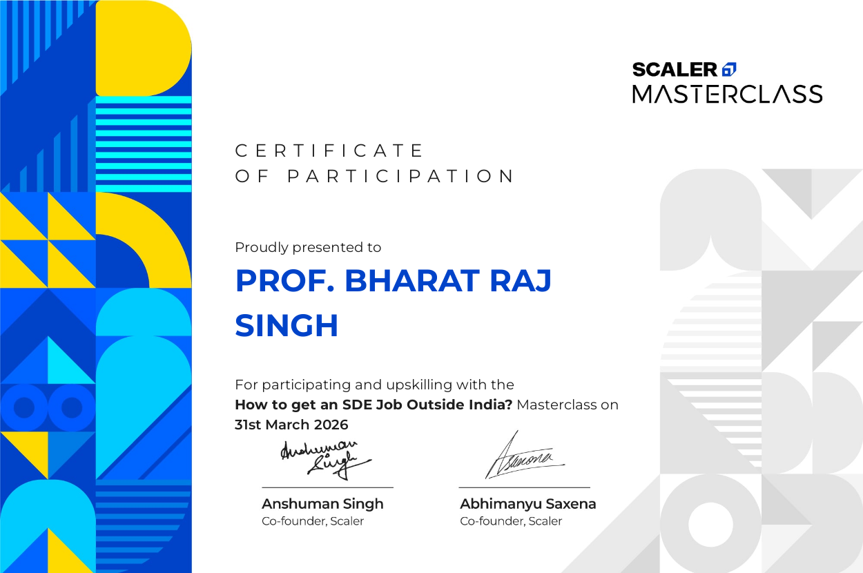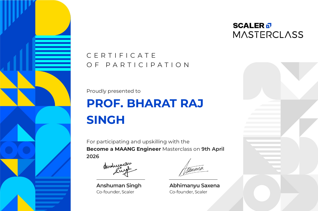 FDP-DSPSR-14 Feb 2026: Researcher To Founder Journey- Delhi School of Professional Studies & Research-05Feb 2026 / SCALER: Data Science Roles- 14 Feb 2026 / SCALER: Data Science Roles- 17 Feb 2026 / SCALER: SOLID Principles- 17 Feb 2026 /