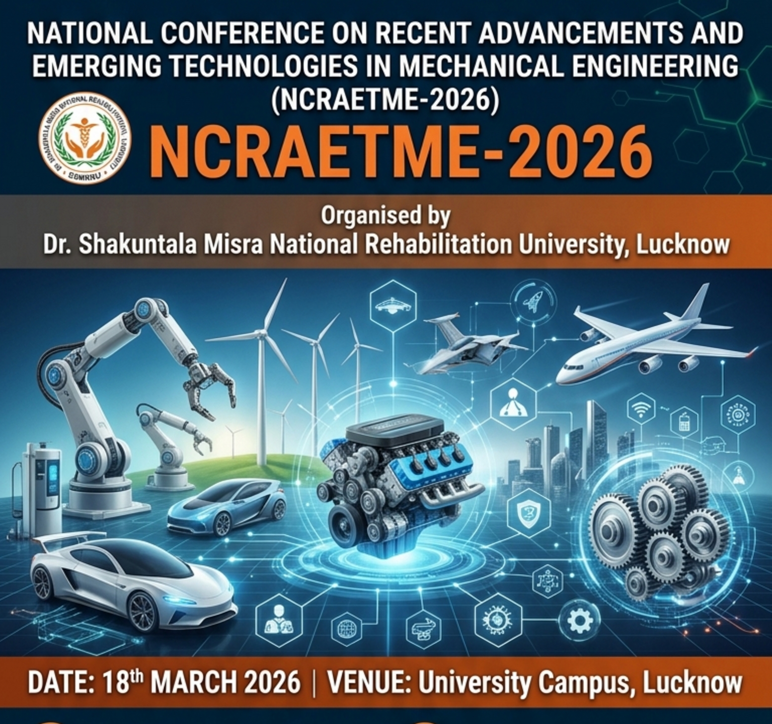 Dr. Shakuntala Mishra National Rehabilitation University, Lucknow, organized a National Conference on Recent Advancements and Emerging Technologies in Mechanical Engineering (NCRAETME-2026)- on 18 March 2026 at its campus. Prof. Bharat Raj Singh was invited to deliver the keynote address on “Next-Generation Mechanical Engineering: Innovations, Technologies, and Applications.†In his address, he motivated about recent advancement of development of uses of AI & IOT and