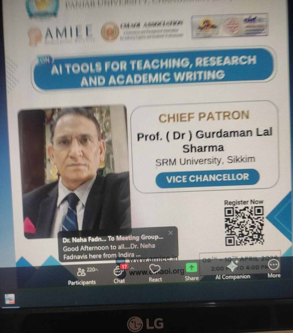 Prof. Bharat Raj Singh, Director General (Technical) honoured as Guest of Honour during the inaugural Session of a Week's FDP organised by AMIEE & Punjab University, Chandigarha on 06th April 2026 at 2:00 PM. The topic of FDP is AI Tools for Innovation, Development & Sustainability.