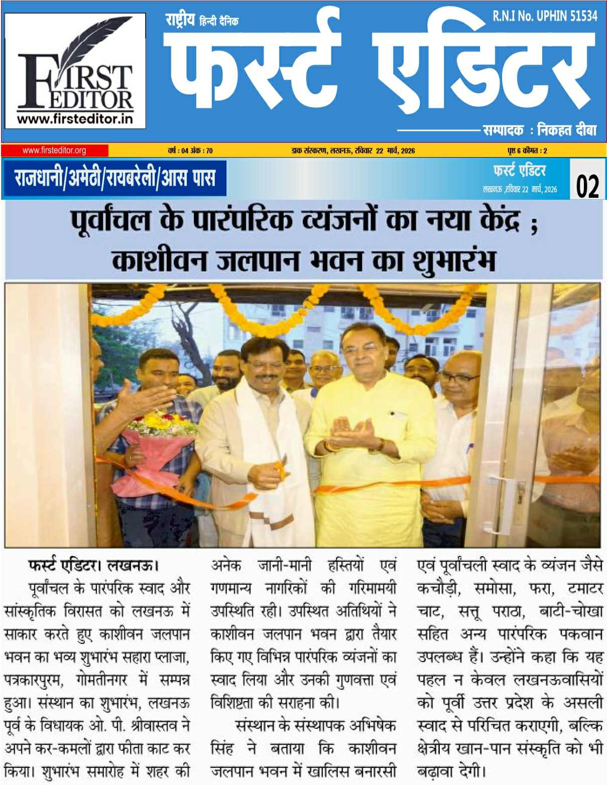 22 March 2026:i).First Editor Page-01 / 23 Mar 2026 ii). Swatantra Prabhat Page-03 / iii).Dastak Times PDF / iv). Early News PDF / 28 Mar 2026: v). Lucknow Tribune Page-06 .