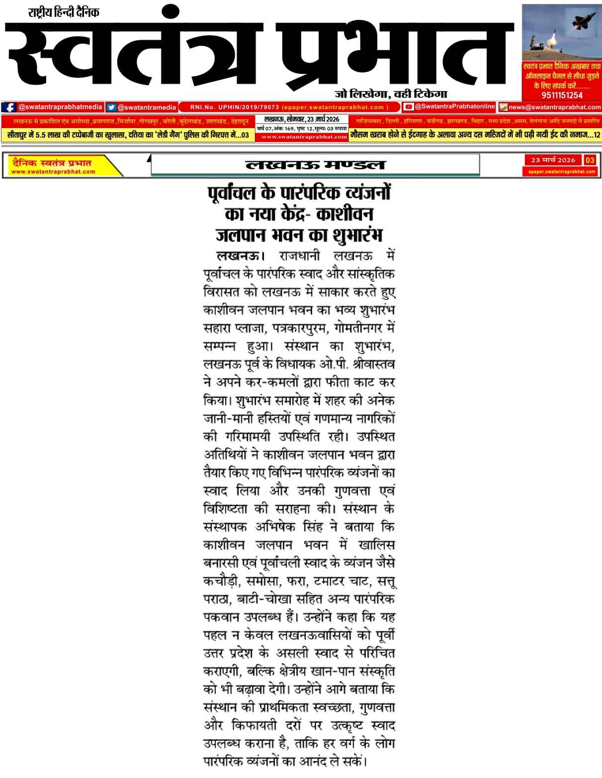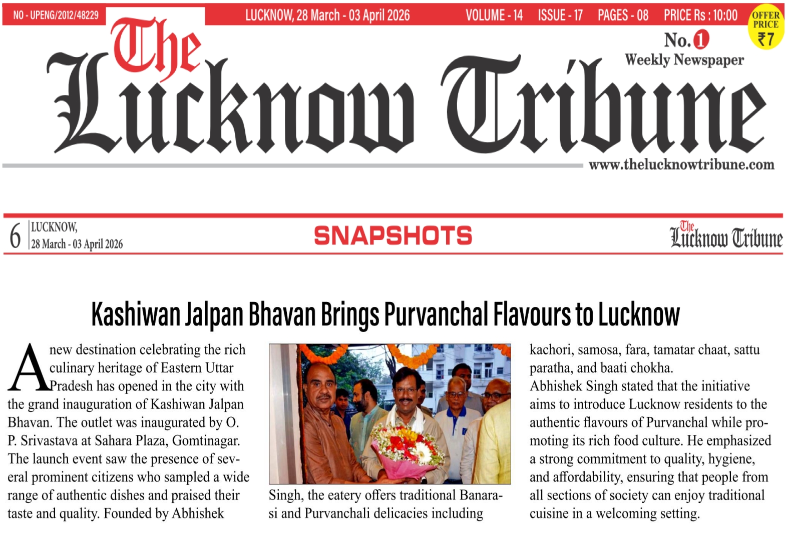 Kashivan Jalpan Bhawan, a new hub of authentic Purvanchal cuisine, was inaugurated at Sahara Plaza, Gomti Nagar, Lucknow by MLA O. P. Srivastava. The event was attended by prominent citizens who appreciated the traditional flavors and quality of dishes. Founder Abhishek Singh highlighted offerings such as kachori, samosa, fara, tamatar chaat, sattu paratha, and baati-chokha. He stated that the initiative aims to introduce Lucknow residents to the rich culinary heritage of Eastern Uttar Pradesh.